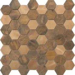 Enaide Copper Metal Effect Stainless Steel Mosaic Tile Sheet, (L)330mm (W)282mm